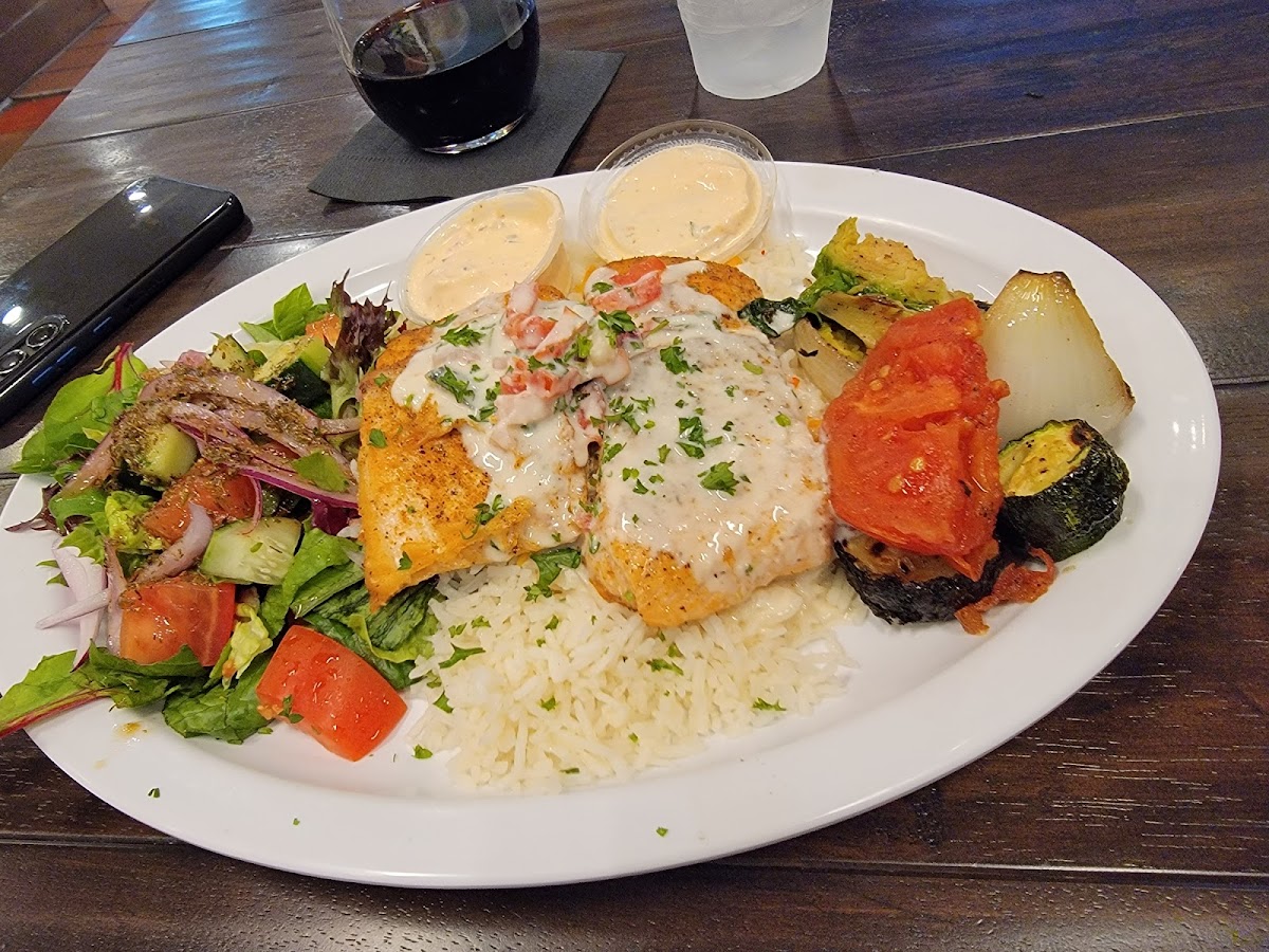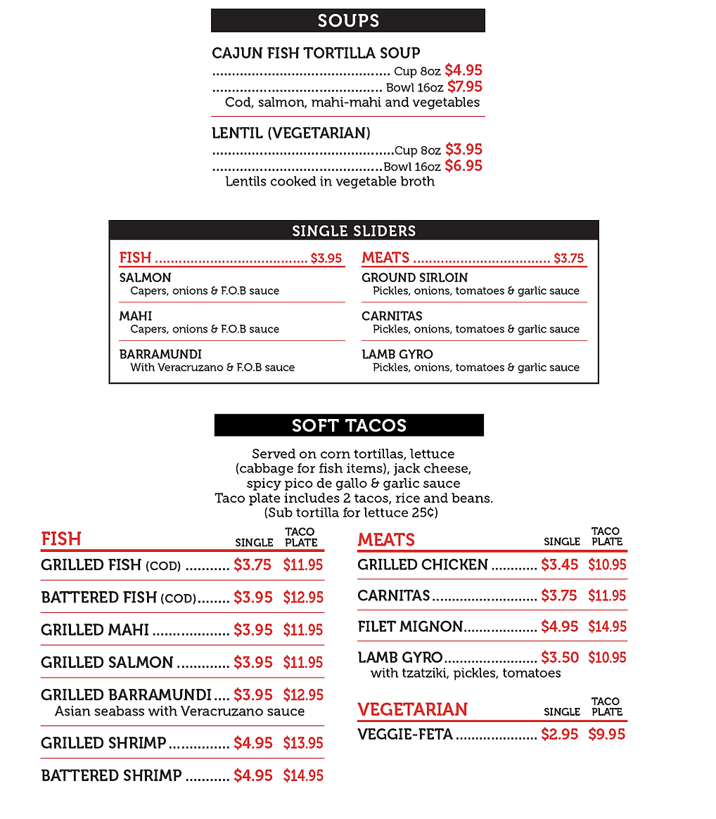 The menu here is a delightful fusion of Mediterranean and seafood, featuring mouthwatering dishes that highlight the freshest ingredients. Begin your meal with a warm bowl of FOB Clam Chowder, a New England classic that tantalizes the taste buds with every creamy spoonful. Or opt for the FOB Cajun Soup, rich with flavors from grilled fish and a satisfying Cajun veggie broth that warms you right up.
