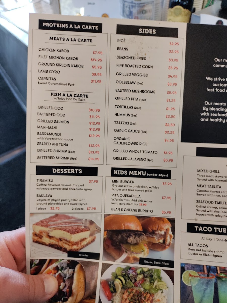 Side dishes such as Seasoned Fries, flavorful Hummus, or zesty Fire Roasted Corn complement your meal beautifully, while the Falafel and Side Cauliflower Rice offer delightful vegetarian options. Each bite is crafted with care, leaving you with a lingering satisfaction that beckons you to return.